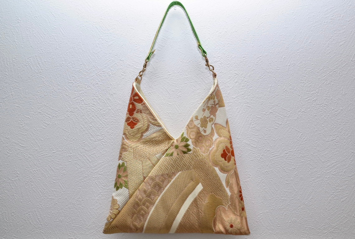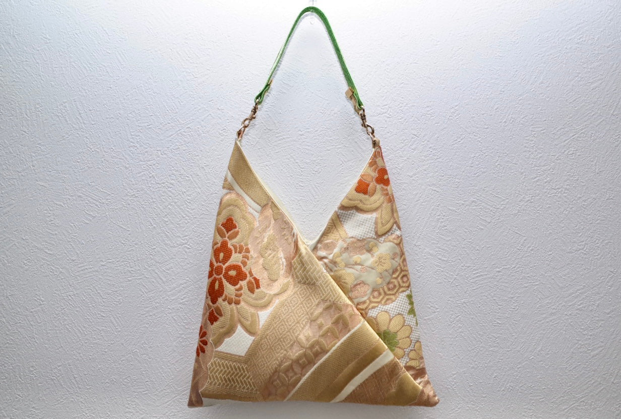 هذا المنتج عبارة عن حقيبة فريدة من نوعها مصنوعة من حزام كيمونو عتيق معاد تدويره .
