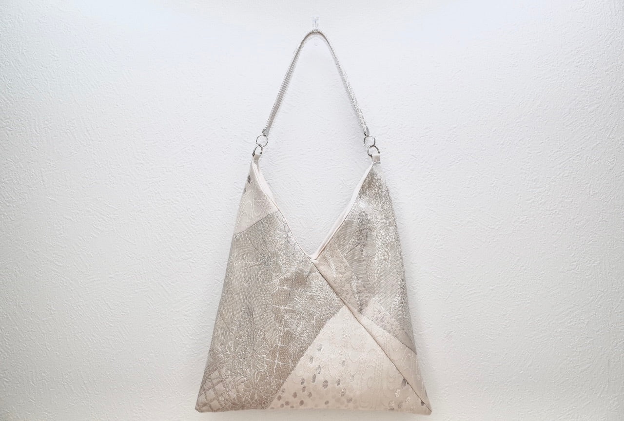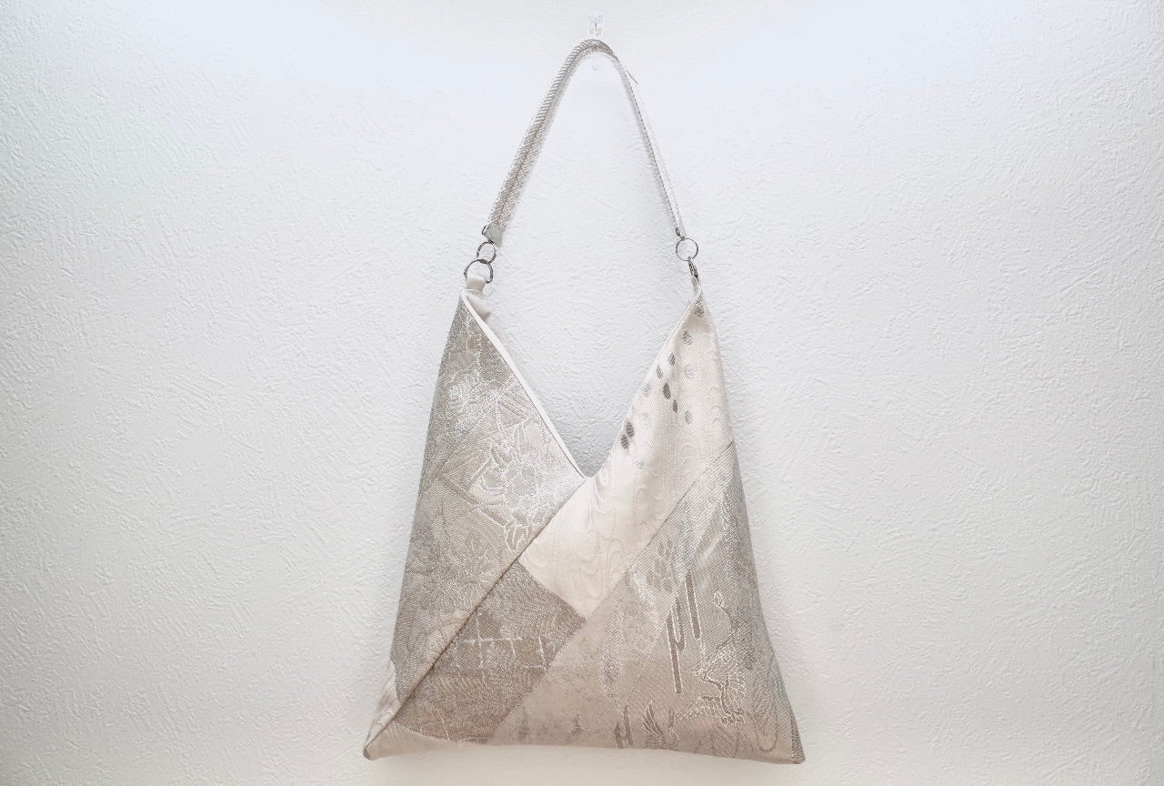 هذا المنتج عبارة عن حقيبة فريدة من نوعها مصنوعة من حزام كيمونو عتيق معاد تدويره .