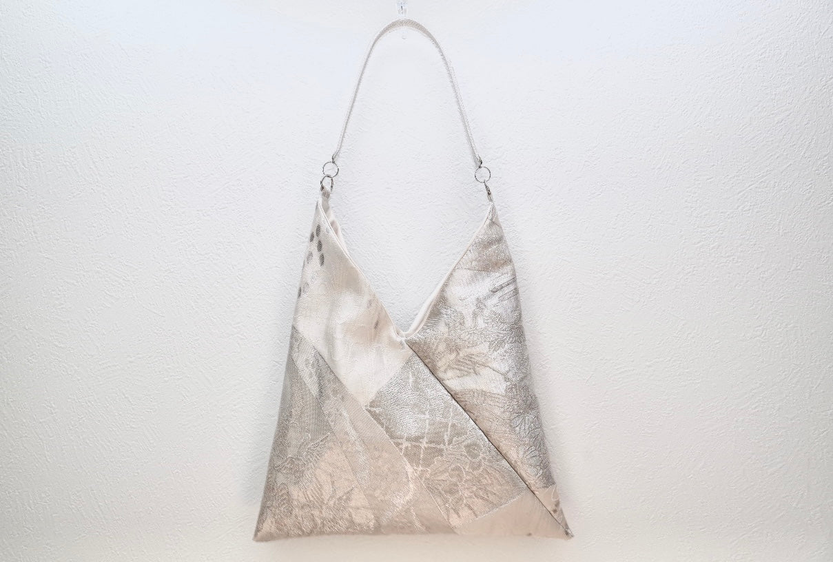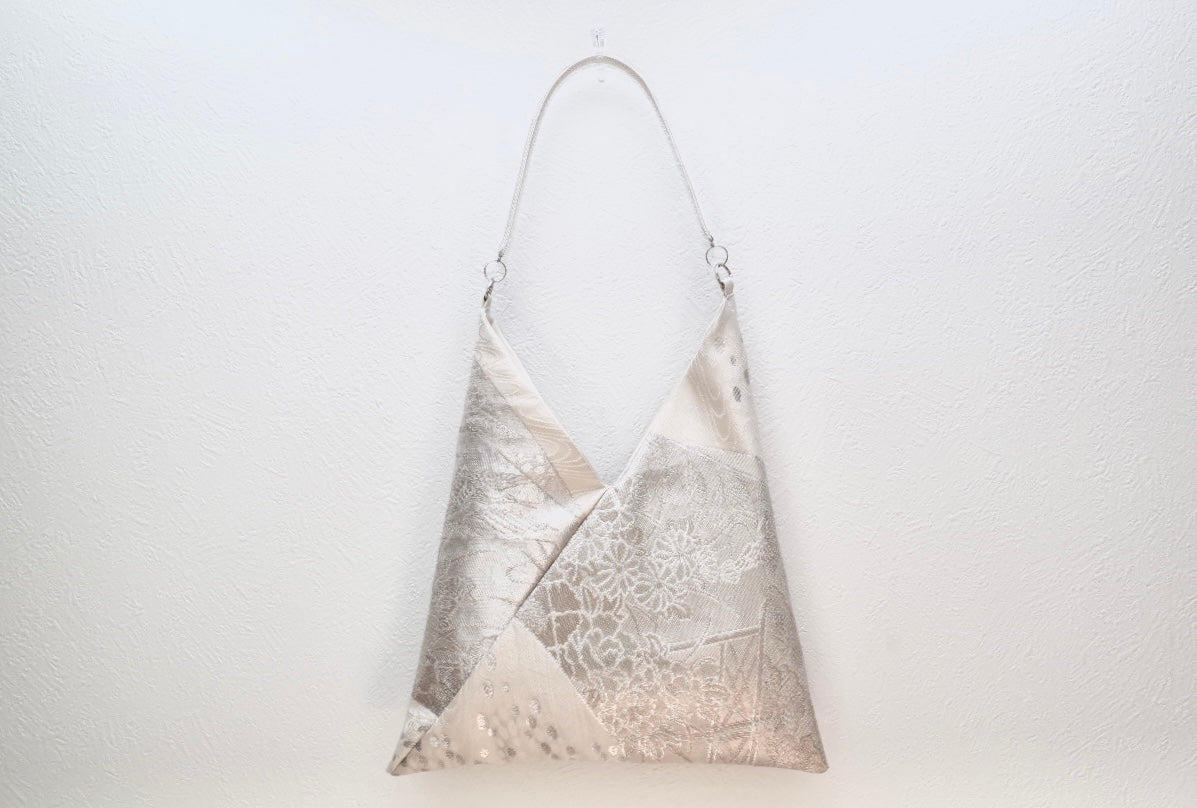 هذا المنتج عبارة عن حقيبة فريدة من نوعها مصنوعة من حزام كيمونو عتيق معاد تدويره .