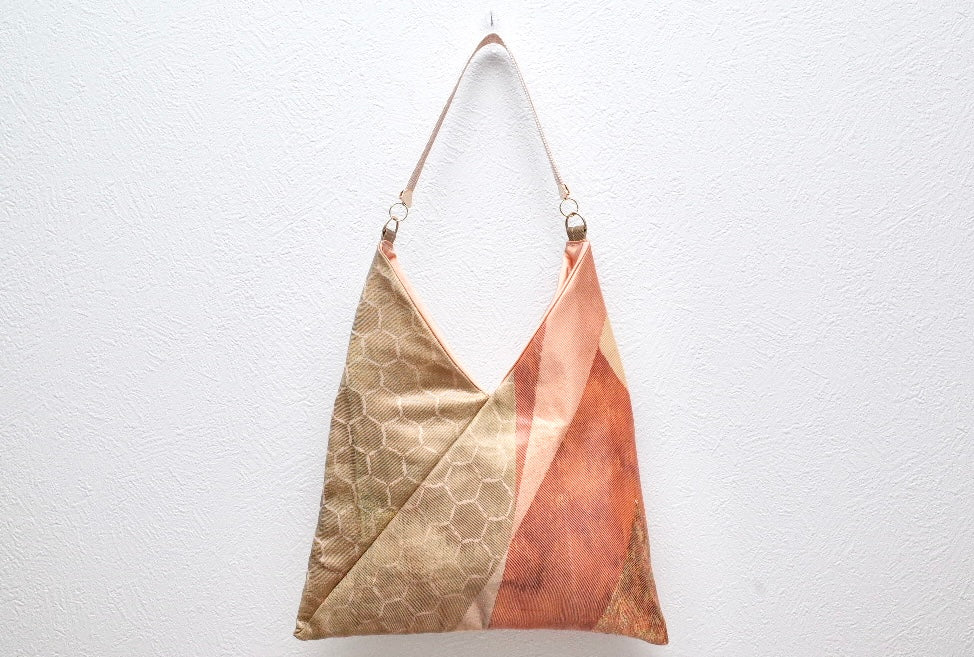 This product is a one-of-a-kind bag made from an upcycled vintage kimono obi .
