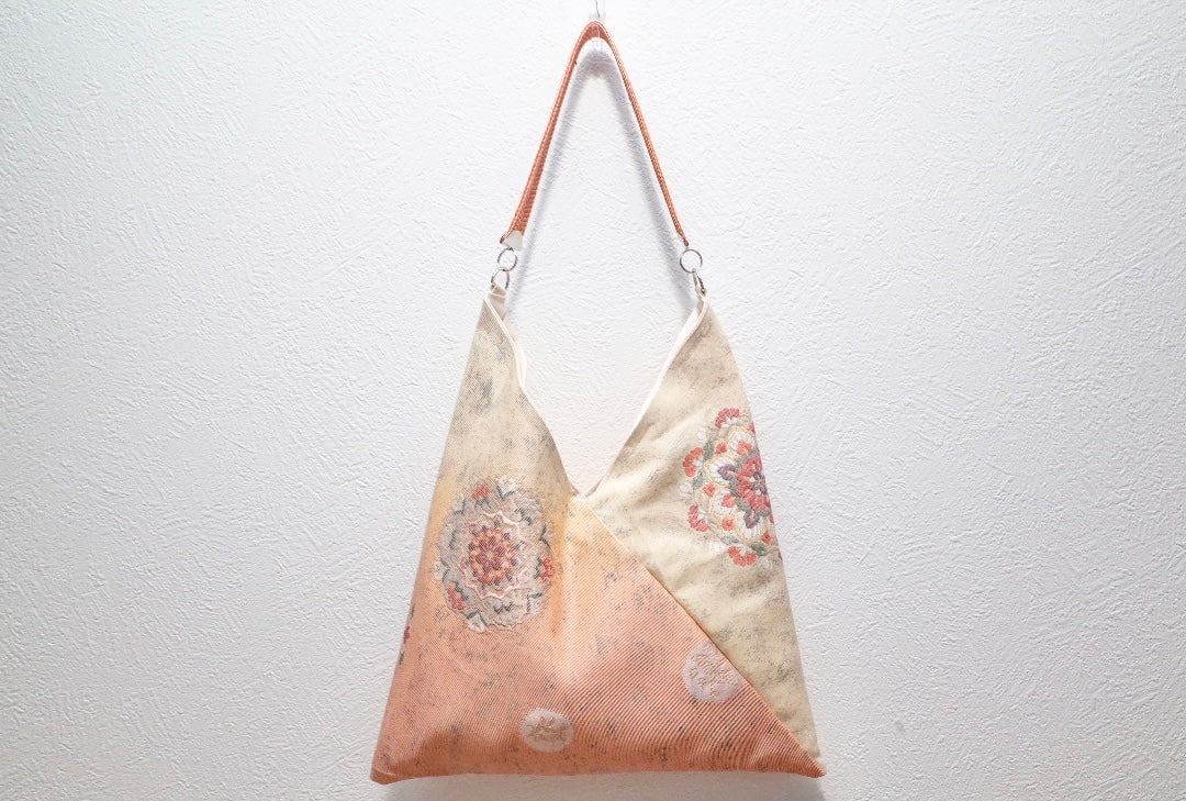 本商品は、着物のビンテージ帯をアップサイクルして仕立てた一点もののバッグになります。