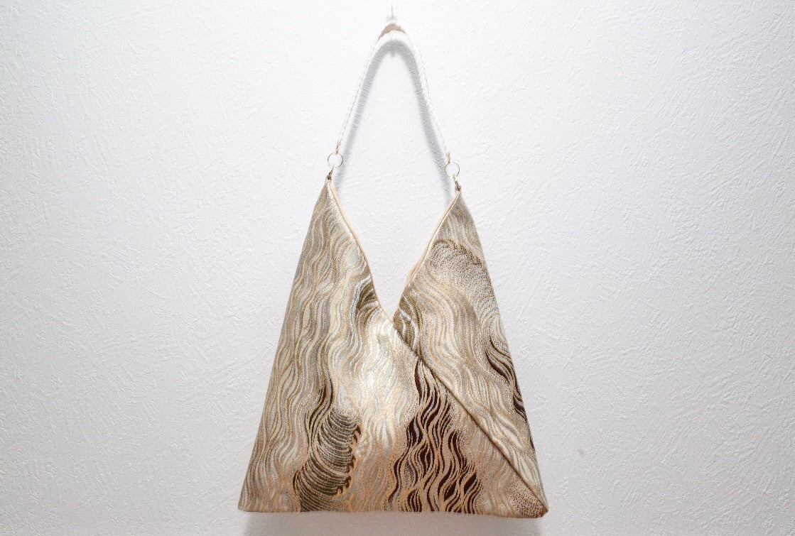 本商品は、着物のビンテージ帯をアップサイクルして仕立てた一点もののバッグになります。
