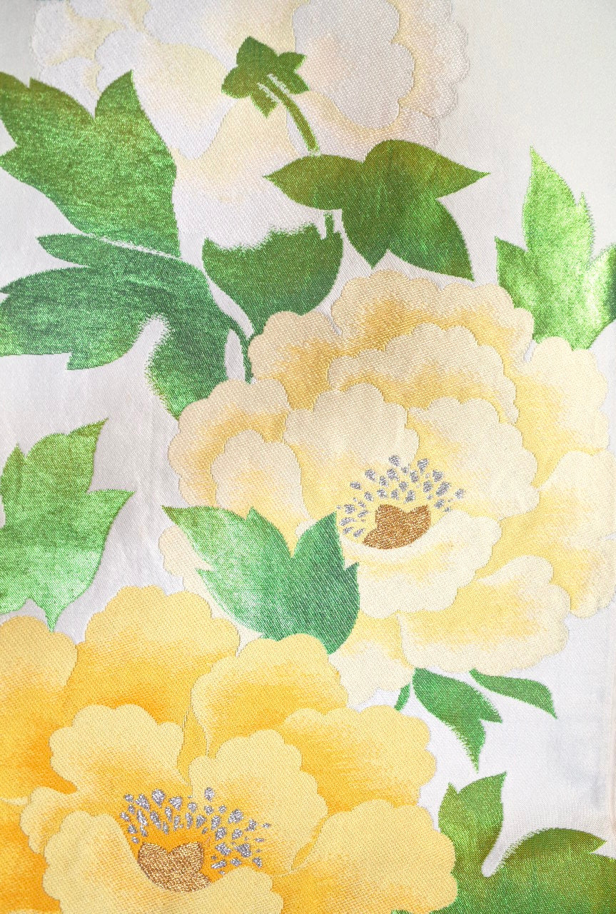 帯には絹や金糸、銀糸、化繊などが使われており、光沢や織り模様が美しいのが特徴です。